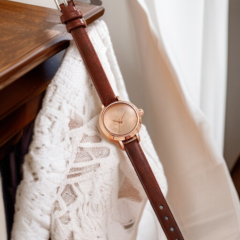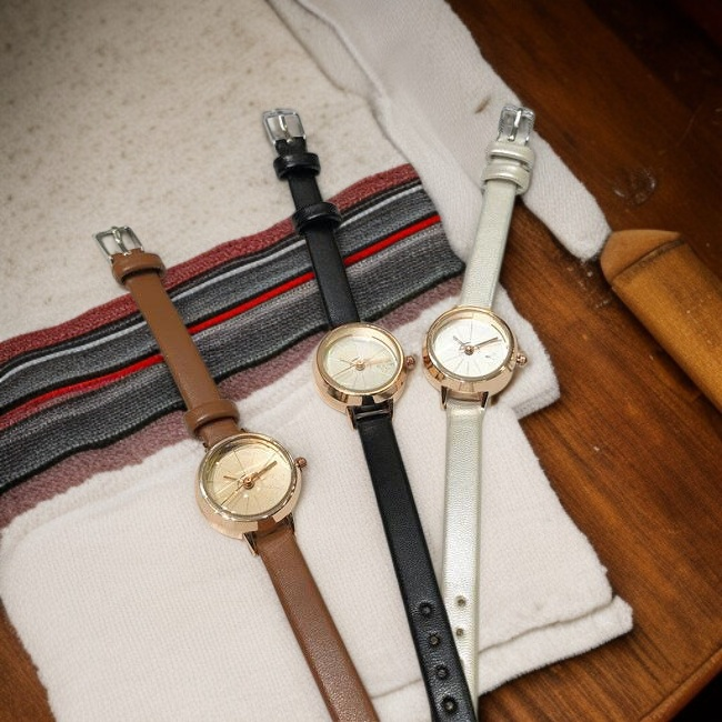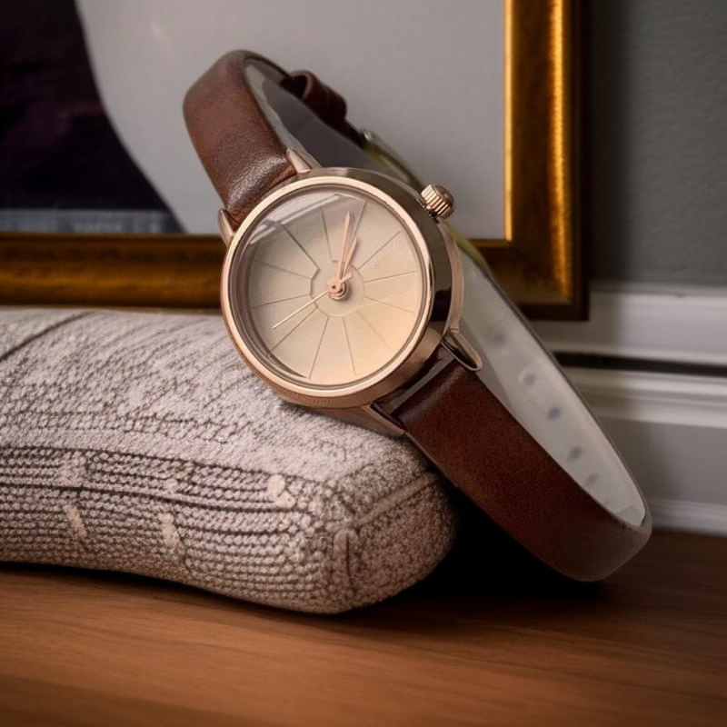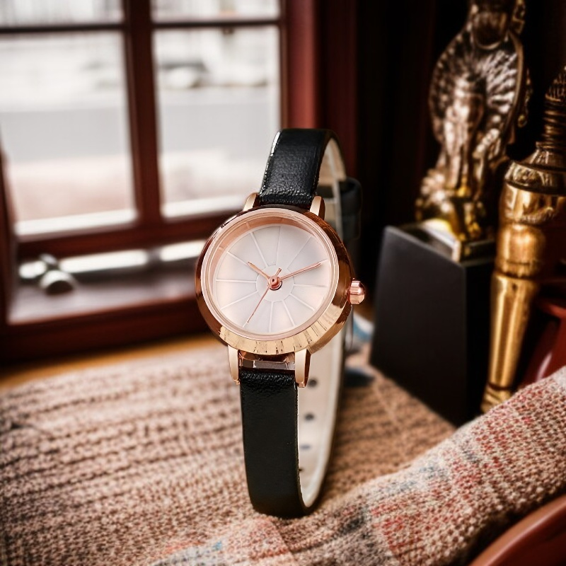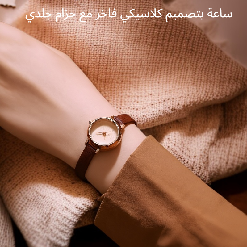 ساعة بتصميم كلاسيكي فاخر مع حزام جلدي